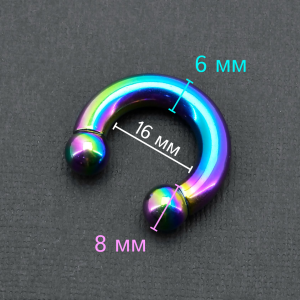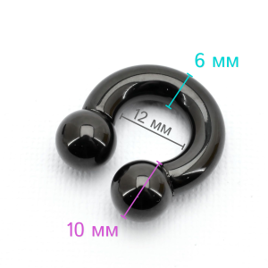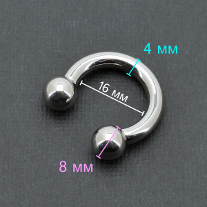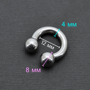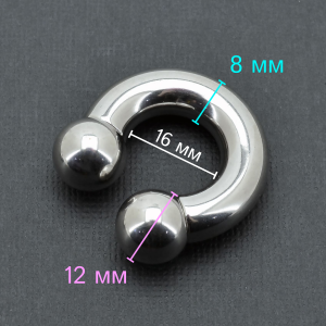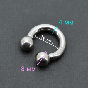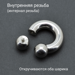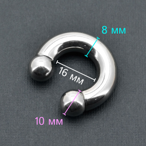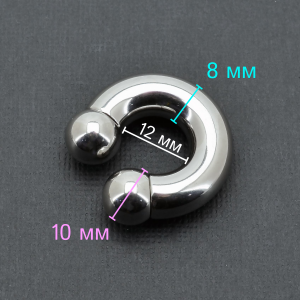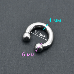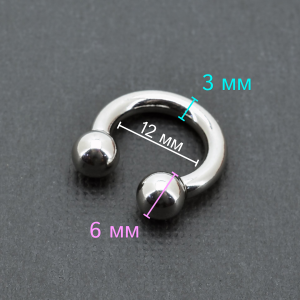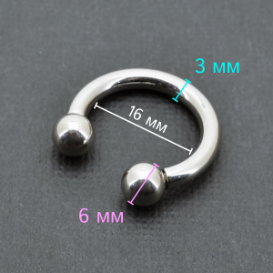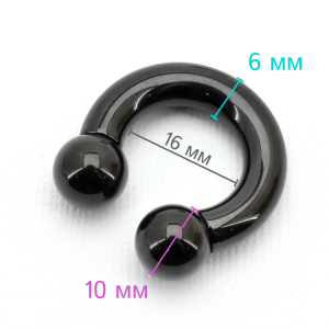 - Толщина кольца 6 мм. Диаметр шарика 10 мм. Шарик Spring Loaded, снабжён двумя дополнительными подпружиненными шариками, которые при установке попадают в специальные углубления на внутренних частях кольца.Хирургическая сталь 316L.