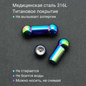 Интернал-штанга 3 мм, радужное титановое анодирование. IBBRB8